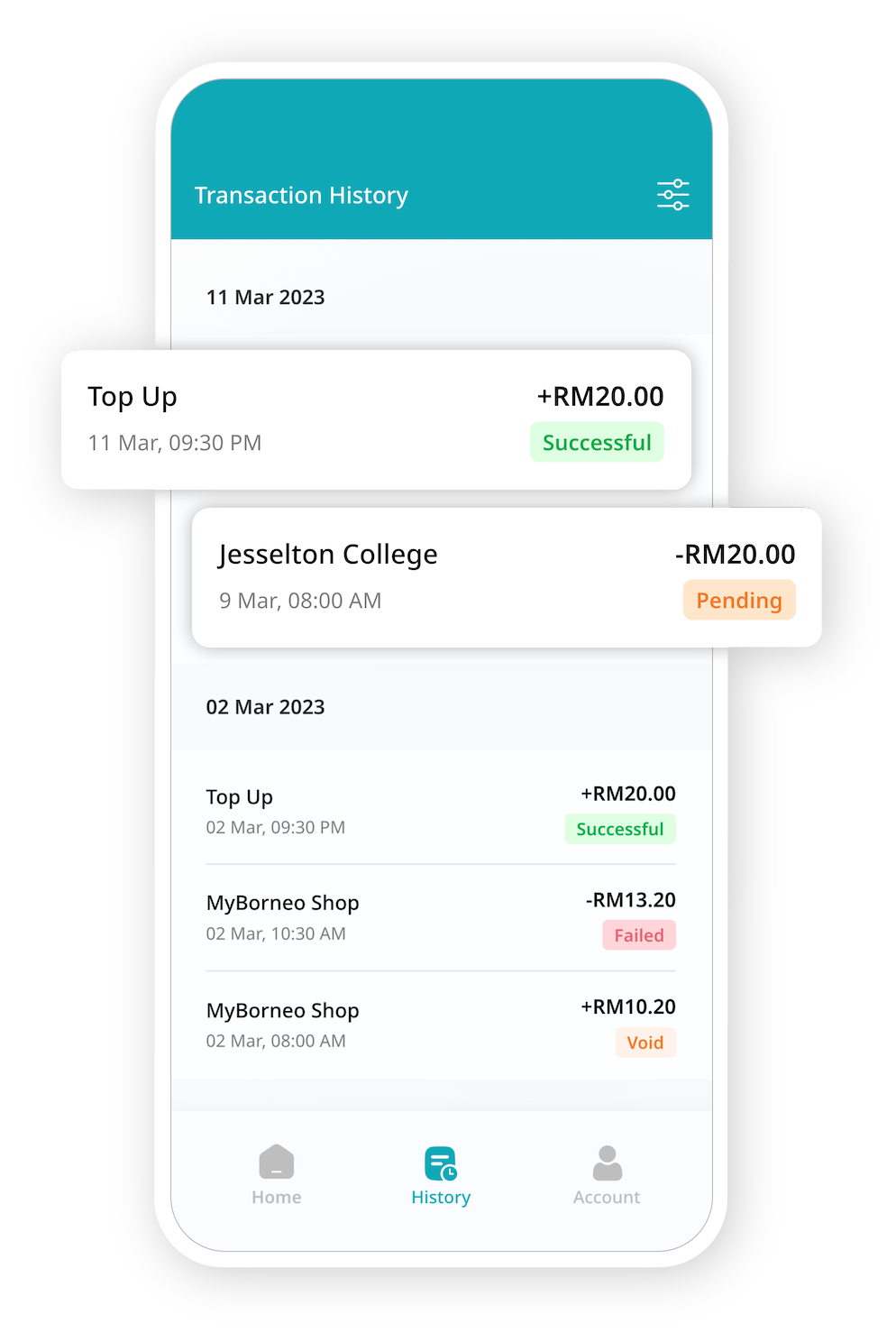 Fund your YONOPay account from linked cards or bank accounts.